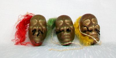 Title (ebay affiliate link): 3 vintage SHRUNKEN HEAD monster toy Plastic Skull Jivro Native from the Amazon