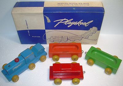 Title (ebay affiliate link): vintage1950's PLAYSKOOL Special Freight Train pull toy in original box