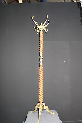 vintage quality 1950th coat tree French brass coat rack ornate barley twist wood