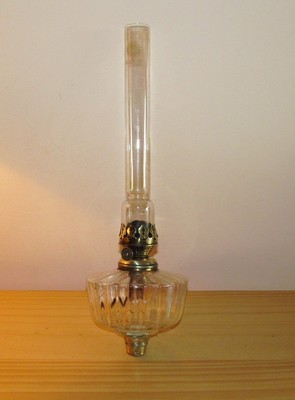 Title (ebay affiliate link): Super antique Victorian clear glass font with single burner and chimney.