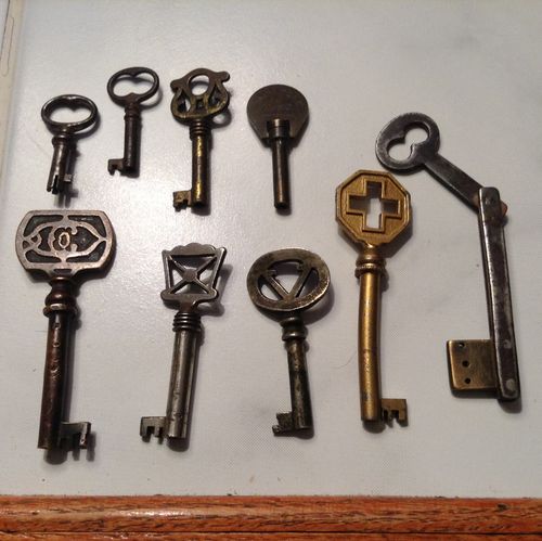 skeleton keys, Antique, Victor Victrola, Furniture, Stetson Piano, Columbia