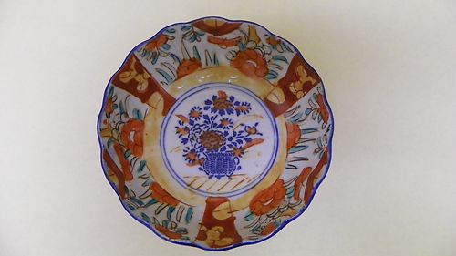 Antique Japanese Imari Bowl Meiji Perioid 1880? 2 Blue Rings Inside 3 Outside NR