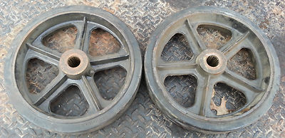 2 Large Cast Iron Industrial Factory Wheels Cart Hardware Table VTG Railroad USA