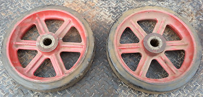2 Large Cast Iron Industrial Factory Wheels Cart Hardware Table VTG Railroad USA