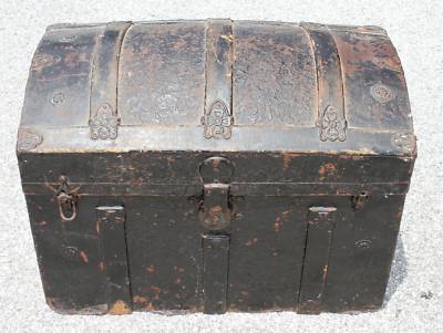 RARE VERY OLD ANTIQUE HALF SIZED DOME TOP STEAMER TRUNK