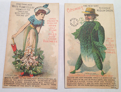 2 VEGETABLE PEOPLE VICTORIAN TRADE CARDS