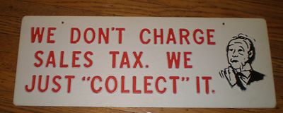 White Plastic "We Don't Charge Sales Tax We Just Collect It" Store Sign