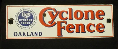 Title (ebay affiliate link): VINTAGE, PORCELAIN, CYCLONE FENCE SIGN, OAKLAND CALIF GOOD CONDITION
