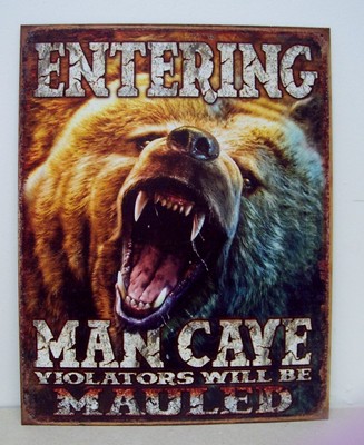 Title (ebay affiliate link): Entering Man Cave Violators will be Mauled bear teeth Metal Tin Sign