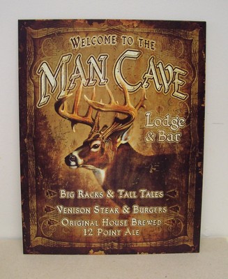 Title (ebay affiliate link): Welcome to the MAN Cave Lodge & Bar deer 12 point ale steaks Metal Tin Sign