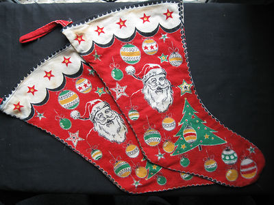 2 Vintage FELT CHRISTMAS STOCKINGS, 40's?