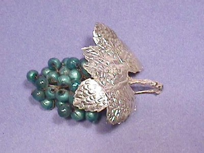 Antique Vintage Glass Paper Christmas Feather Tree Ornament bunch grapes cWWI