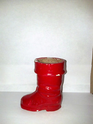 Title (ebay affiliate link): VINTAGE PAPER MACHE' SANTA CLAUS BOOT CHRISTMAS CANDY CONTAINER, 1930'S.