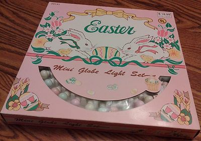 VINTAGE 1993! EASTER PASTEL MINI GLOBE LIGHT SET! NIB! RARE! ANTIQUE HOME DECOR