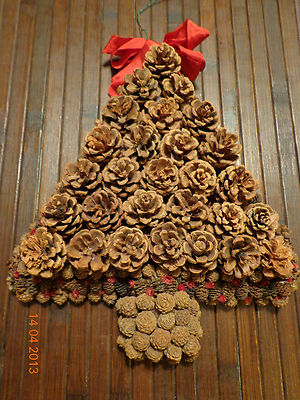 ANTIQUE VTG XMAS TREE ORNAMENTS PINECONE REALWALL HANGING Tramp Art Primitive