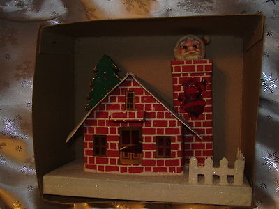 Title (ebay affiliate link): Vintage Early 1940's CHRISTMAS Putz House~ "SANTA IN CHIMNEY"~Village or Train