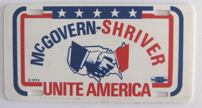 Title (ebay affiliate link): McGOVERN, SHRIVER UNITE AMERICA 1972 POLITICAL LICENSE PLATE