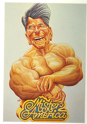 Title (ebay affiliate link): RONALD REAGAN "Mister America" comic postcard.1980s. Unmailed, mint.