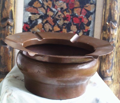 Title (ebay affiliate link): Hand Hammered Arts & Crafts ashtray, marked, "I" or "J" Brandt. Roycroft, Heintz