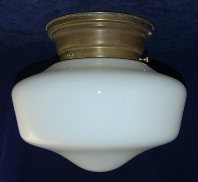 Antique vtg brass light fixture schoolhouse shade 6" fitter