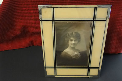 ANTIQUE ART DECO GLASS FRAME WITH ANTIQUE PHOTO