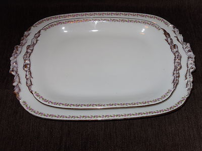 TWO ANTIQUE J POUYAT FRENCH LIMOGES CHINA SERVING PLATTERS FOR "WANAMAKERS"