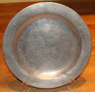 ANTIQUE PEWTER FLAT RIM PLATE, WORN MARK, 18TH CENTURY