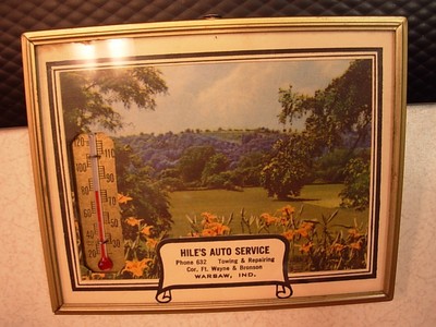 Title (ebay affiliate link): Vintage Picture Thermometer Advertising Hiles Auto Service Warsaw IN Landscape