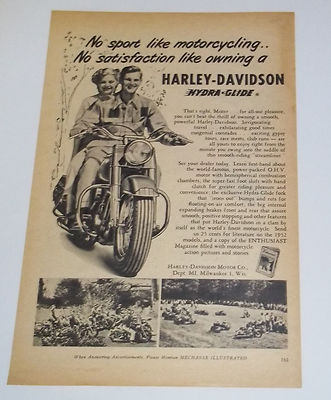 Title (ebay affiliate link): 1952 HARLEY DAVIDSON Hydra-Glide Motorcycle Ad - Mechanix Illustrated - ORIGINAL