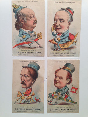 4 RARE POLITICAL VICTORIAN TRADE CARDS