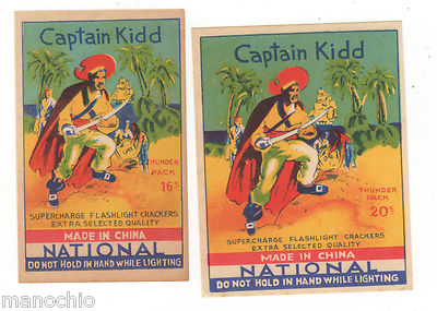 Title (ebay affiliate link): Vintage Chinese Macau Captain Kidd National Brand Firecracker Labels (20Labels!)