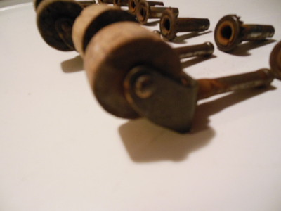 Title (ebay affiliate link): 8 Antique Wooden Caster Wheels for Bed, Furniture Etc.