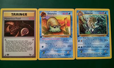 Title (ebay affiliate link): 1st Edition Mysterious Fossil Omanyte And Omastar Pokemon Card Lot!