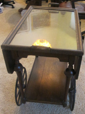 Title (ebay affiliate link): ANTIQUE PAALMAN OAK DROP LEAF TEA CART Removable Glass Tray - Rolling Bar wine