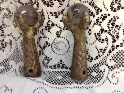 Title (ebay affiliate link): Set of 2 Vintage Antique Brass Glass Ball-in-Claw Furniture Feet Caster Feathers