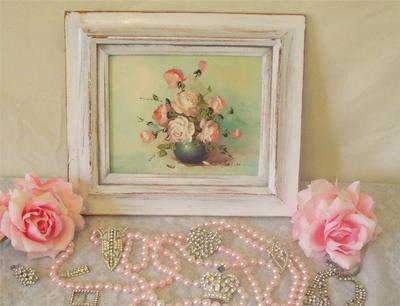 Title (ebay affiliate link): VINTAGE SHABBY COTTAGE PINK ROSES CHIC OIL PAINTING~BEAUTIFUL
