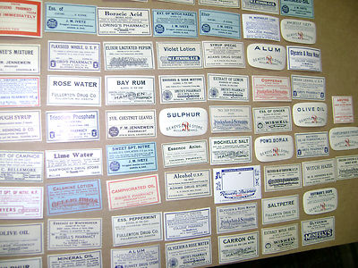 Title (ebay affiliate link): 66+OLD PHARMACY-APOTHECARY-MEDICINE BOTTLE LABELS==ALL DIFFERENT