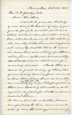 1858 ALS- Princeton Theology Head to Abe Lincolns Pastor- HELP