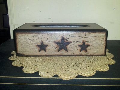 Title (ebay affiliate link): Primitive decor ~ wooden tissue box holder~ country ~ americana ~ star ~