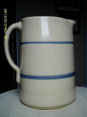 Title (ebay affiliate link): Antique Stoneware Pitcher with two thin Blue Bands