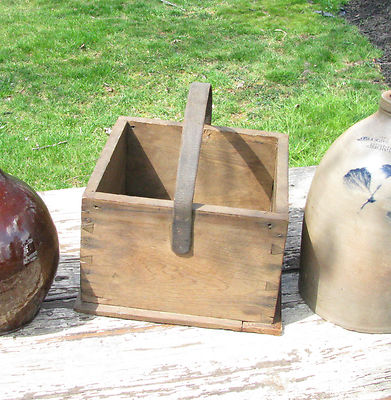 Title (ebay affiliate link): ANTIQUE PRIMITIVE WOODEN BERRY BOX / DOVETAILED CHESTNUT WOOD wth LEATHER HANDLE