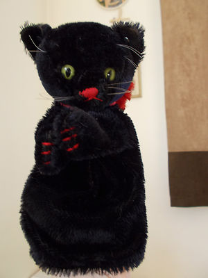 Steiff Black Cat Hand Puppet with Button 1950s? 9ins