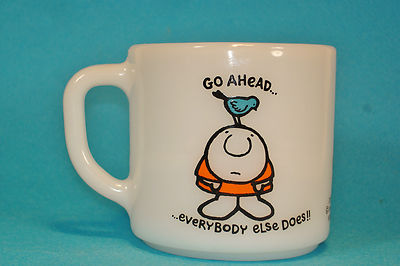 Title (ebay affiliate link): Vintage 1974 "Ziggy" Federal White Milk Glass D-Handle Mug
