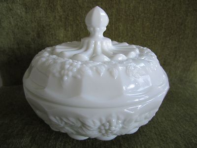 Title (ebay affiliate link): *Westmoreland*Milk Glass*Paneled Grape*Antique* Candy Chocolate dish/box w/lid