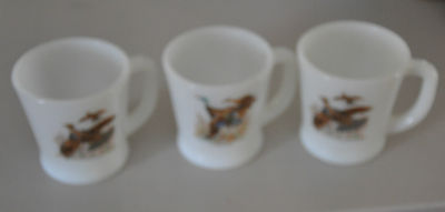 3 Retro 1960's FIRE KING White Milk Glass Cup Mug Game Birds