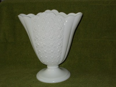 Fenton Buttons & Bows Milk Glass Fan Vase