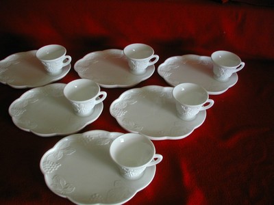 Title (ebay affiliate link): Vintage Set of 6 Indiana Glass Harvest Grape Milk Glass Snack Sets ( 12 pcs )