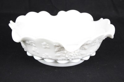 L378 WESTMORELAND 9.5in PANELED GRAPE CRIMPED RIM FOOTED MILK GLASS BOWL EXC