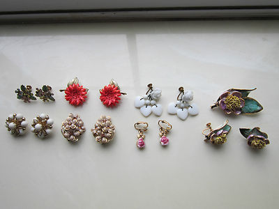 Title (ebay affiliate link): Vintage Flower Earring Lot Cluster Milk Glass Rhinestone Coro