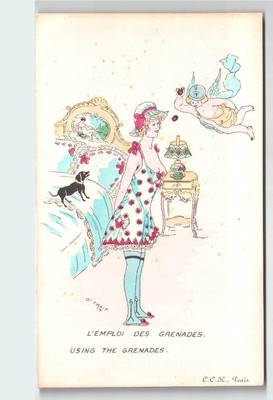 Girl in Night Gown & Pantyhose Cupid throwing Grenades signed O'Trait